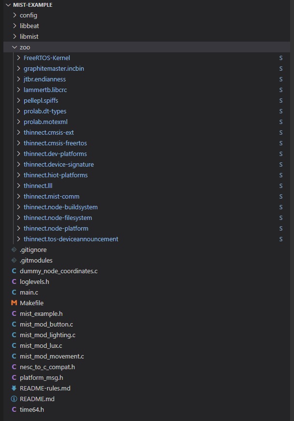 在开发Mist应用时,您需要集中在平台相关的目录下进行开发,也就是 zoo/thinnect.dev-platforms/ 、 zoo/thinnect.node-platform/ 与 zoo/thinnect.node-platform/ 这三个目录。